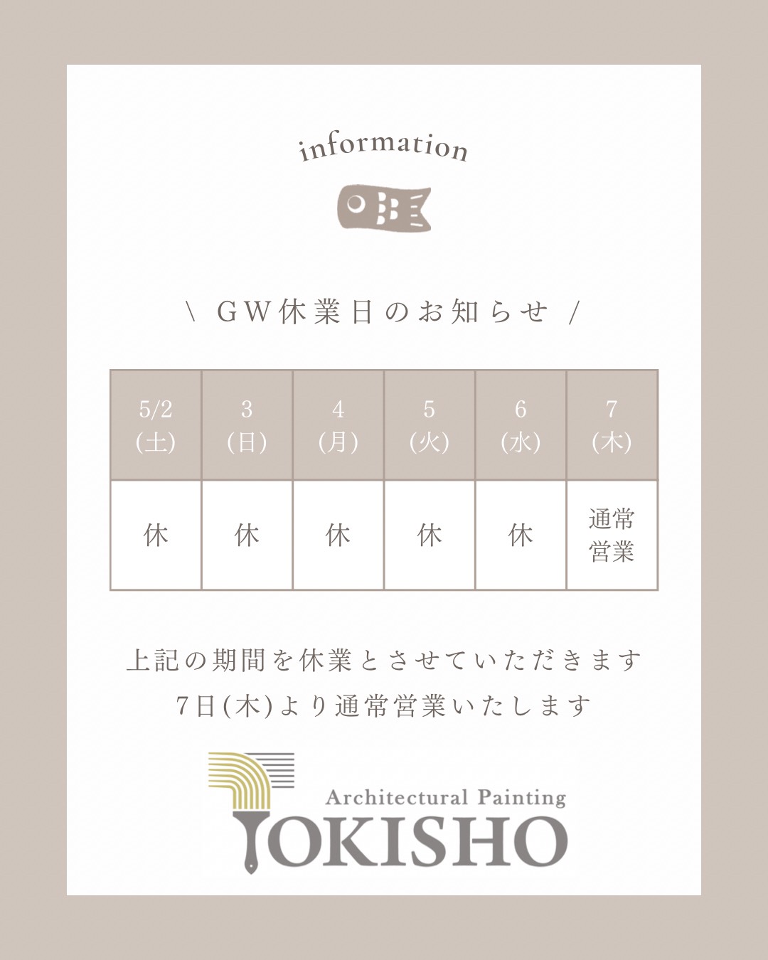 ゴールデンウィーク休業のお知らせ🎏