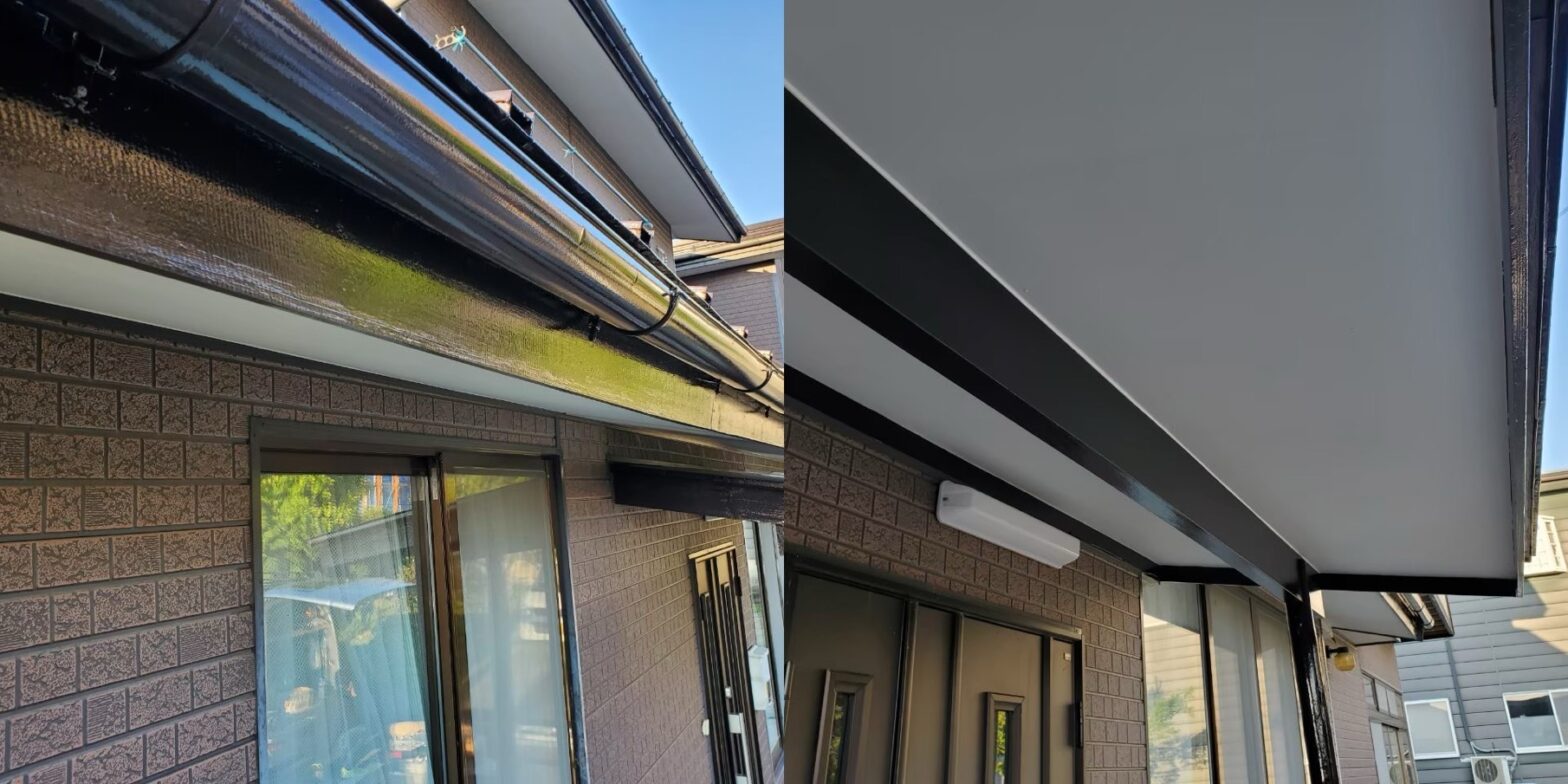 雨樋/軒天・・・今回屋根以外に雨樋や軒天、木部も一緒に塗装を行いました。