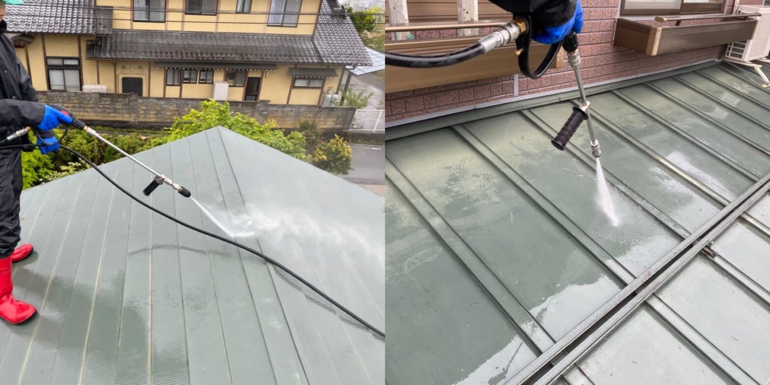 高圧洗浄・・・屋根全体を高圧洗浄機で洗い流します。